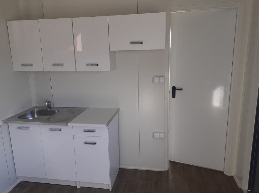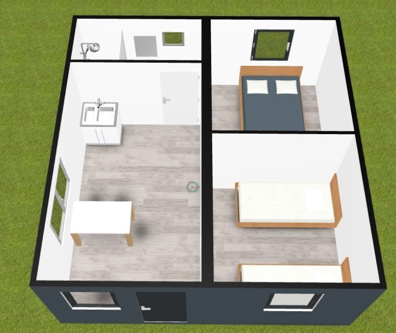 Elle se distingue par une isolation thermique exceptionnelle en polyuréthane de 100 mm (supérieure aux standards de construction traditionnelle) qui garantit une efficacité énergétique optimale et une protection totale contre l’humidité et les nuisibles. Elle dispose de 2 chambres, d’un salon avec cuisine et d’une salle de bain complète.