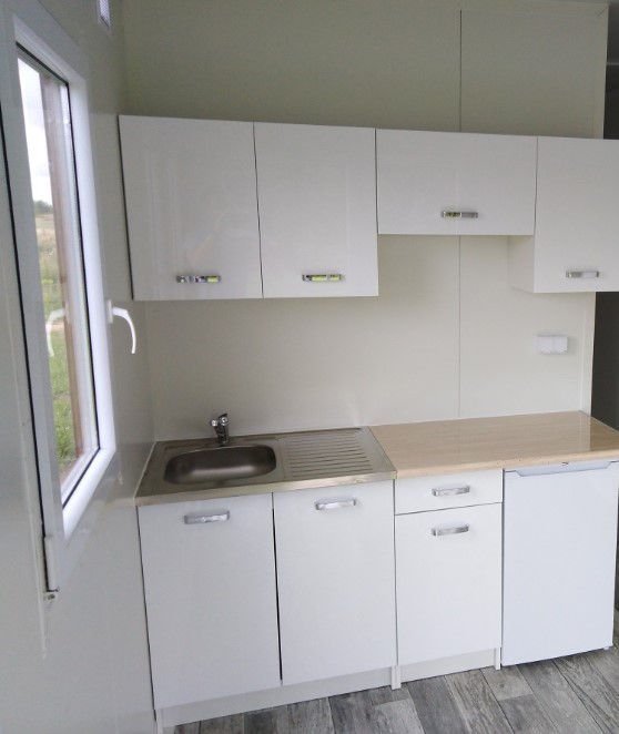 <li><strong>Cuisine :</strong> Kitchenette avec 5 compartiments, pré-installations pour réfrigérateur, évier et électroménagers.</li>