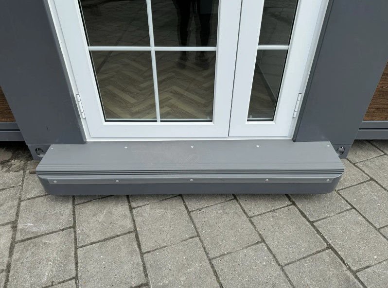 Nécessite une base solide et parfaitement nivelée (dalle de béton ou plots stabilisés). Une fois positionnée, les extensions latérales sont déployées pour créer l’espace de vie complet. Prête pour les raccordements externes d’eau, d’électricité et d’évacuation.